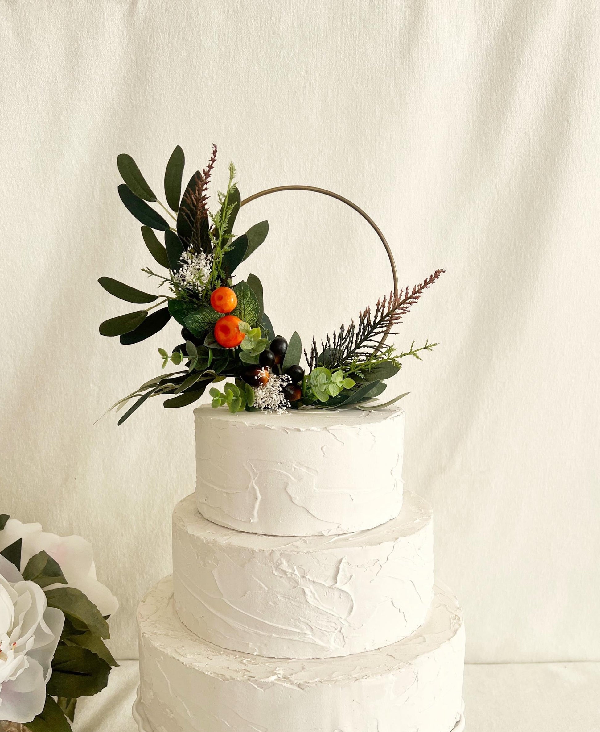 Olive Leaves Cake Topper, Faux Olive Branch Hoop, Mediterranean Wedding